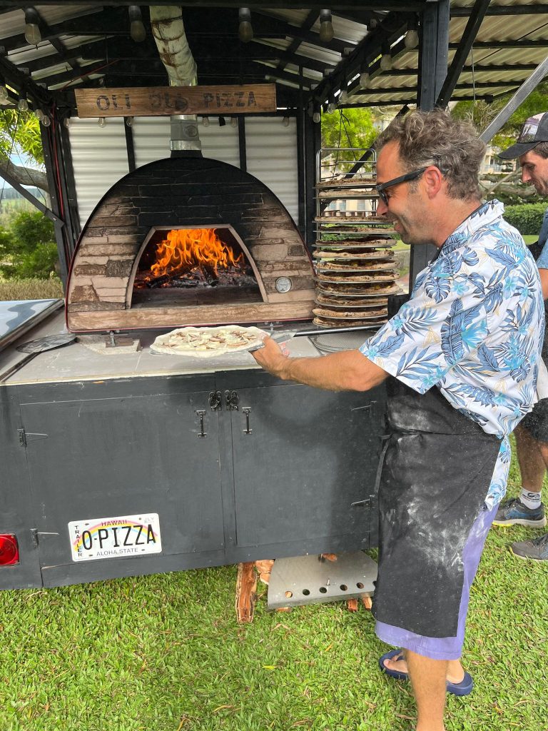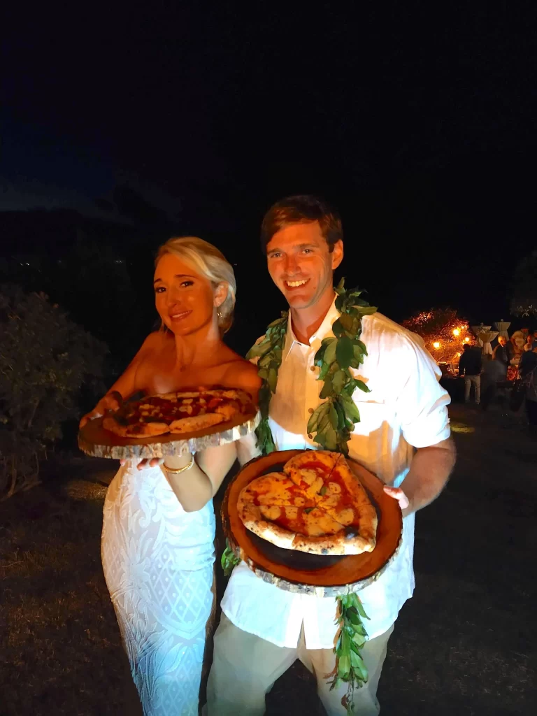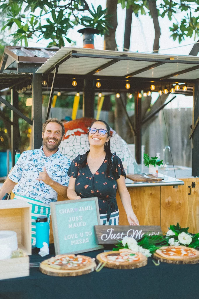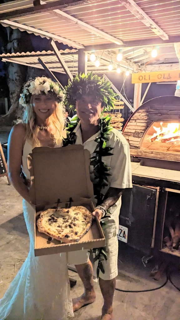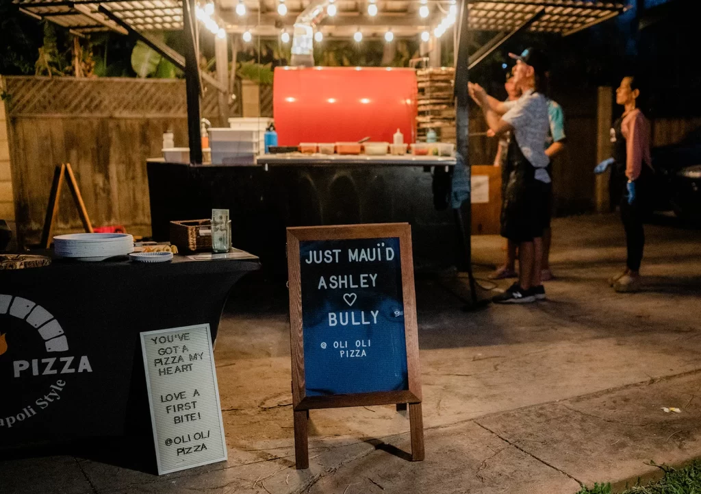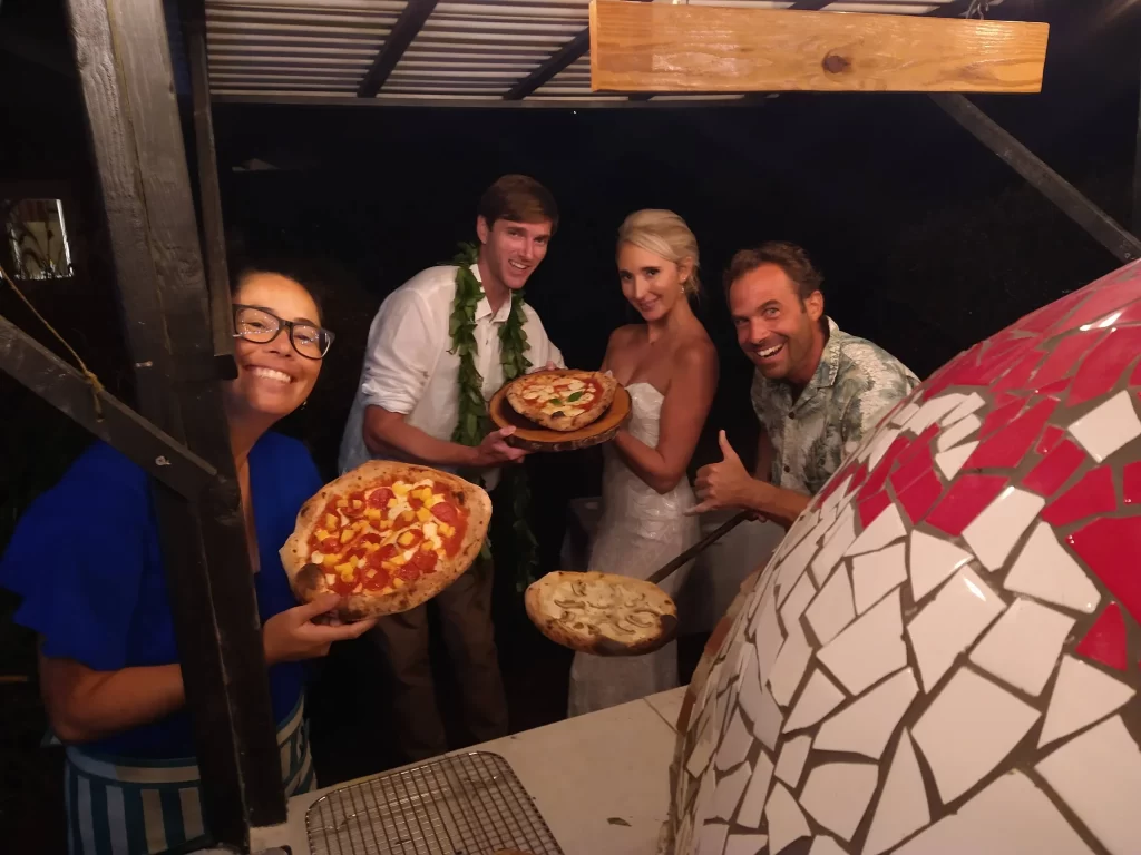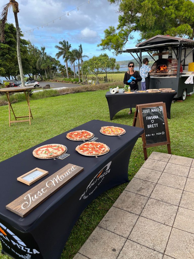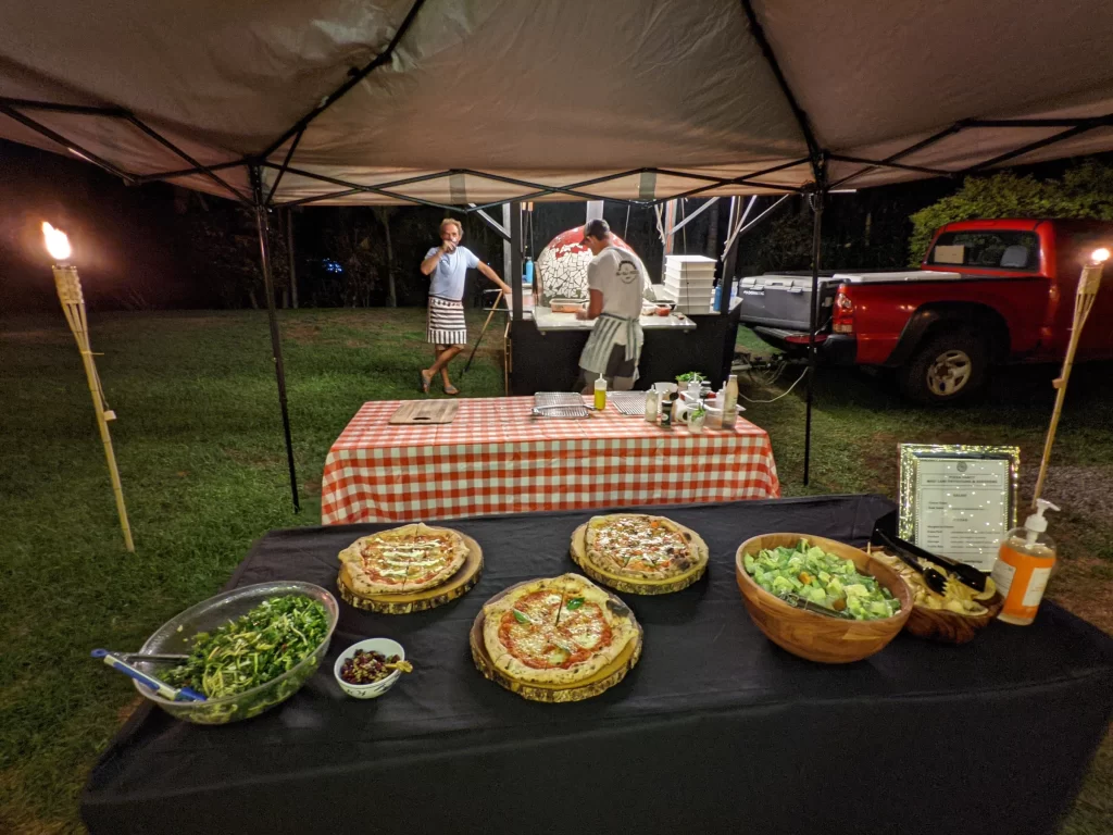 We adored this private location in Haiku, where they held both the rehearsal and actual wedding. Once we got set up, Chris & Kelly’s family and friends started to arrive and we started slinging pizzas!