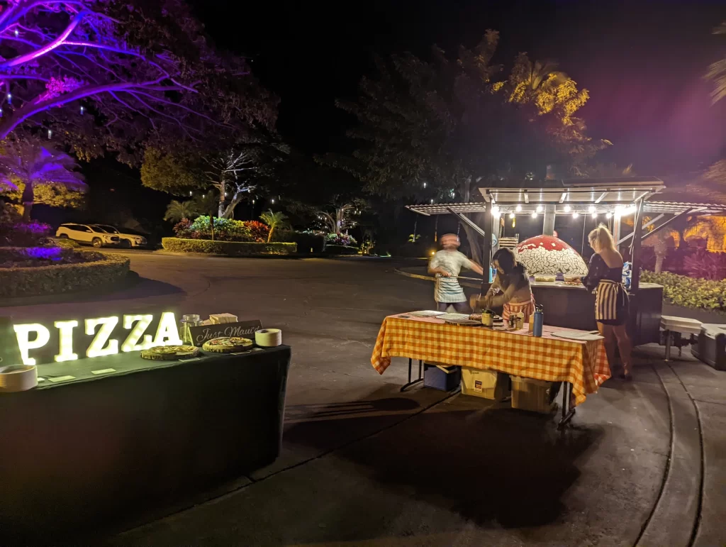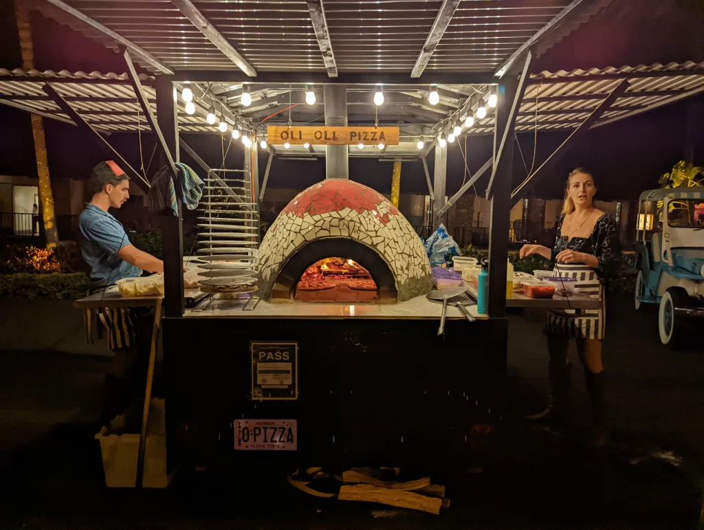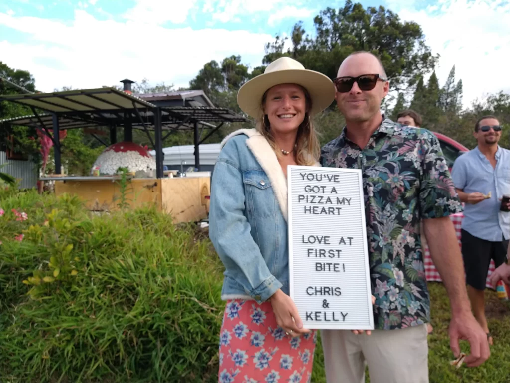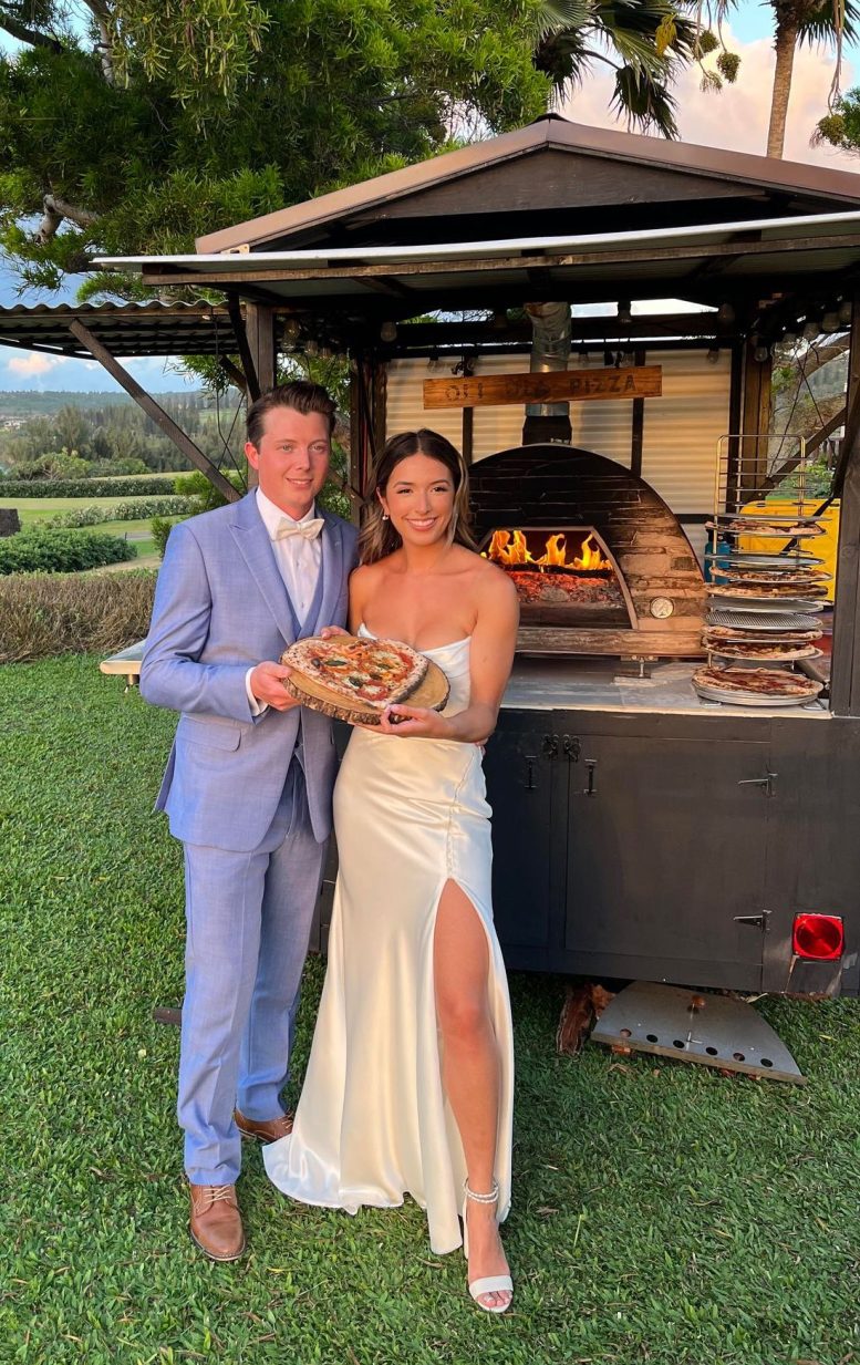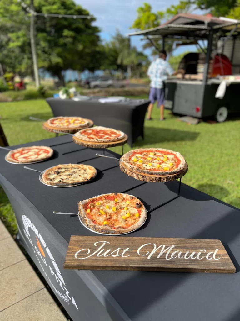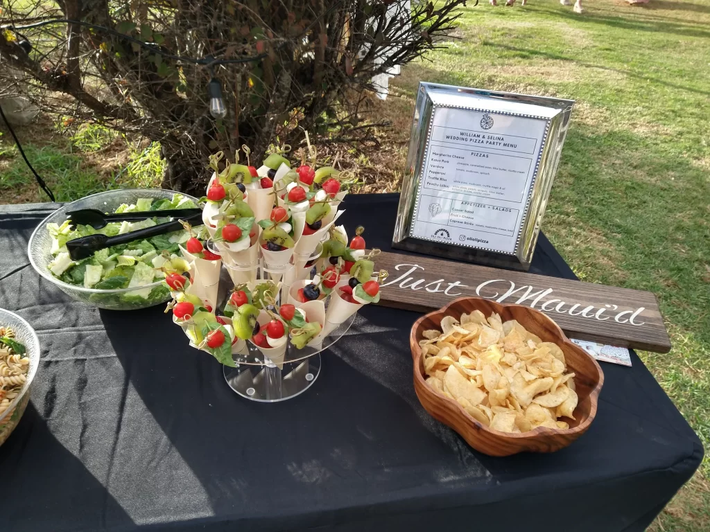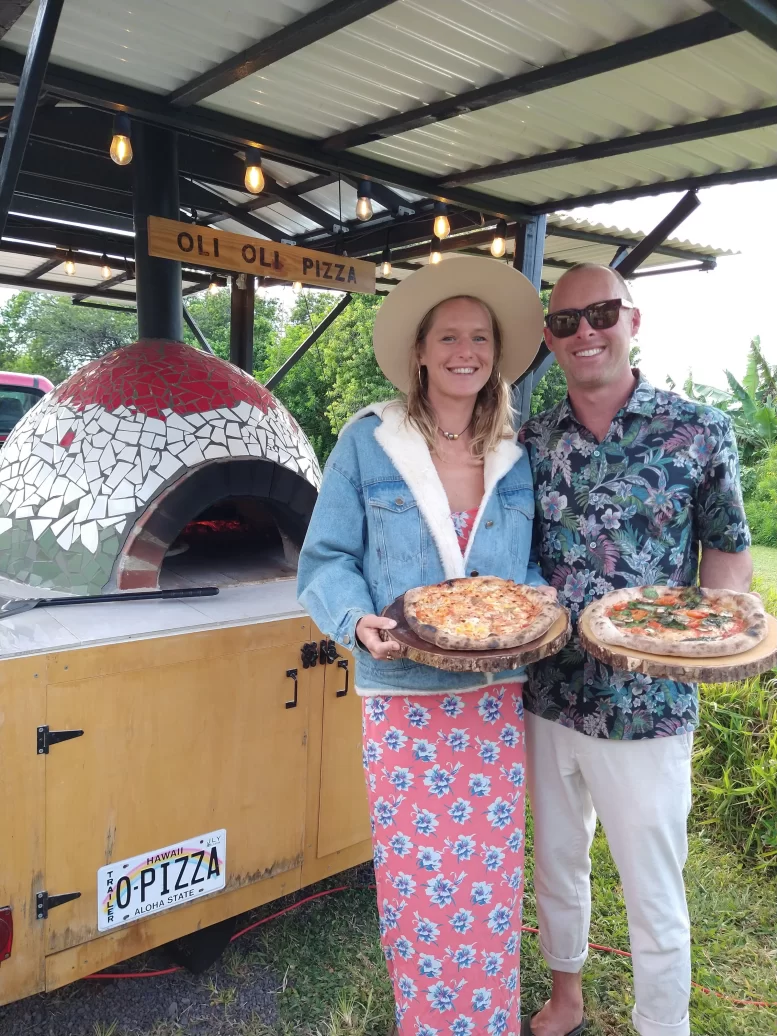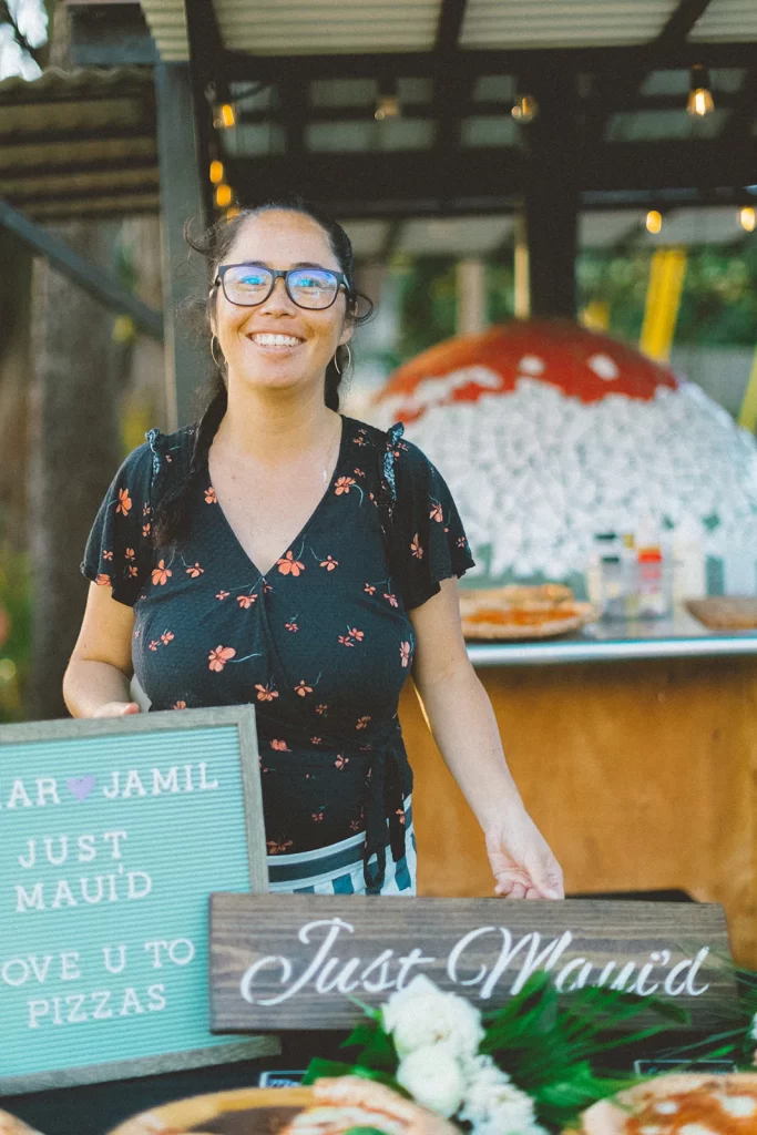 We adored this private location in Haiku, where they held both the rehearsal and actual wedding. Once we got set up, Chris & Kelly’s family and friends started to arrive and we started slinging pizzas!