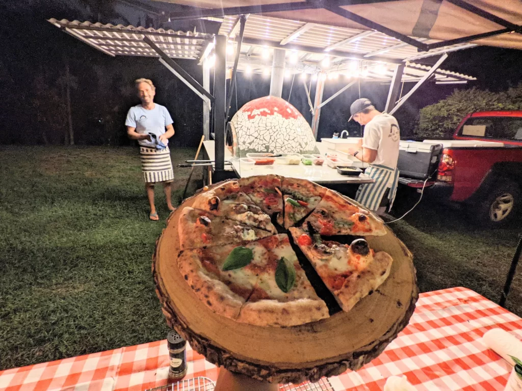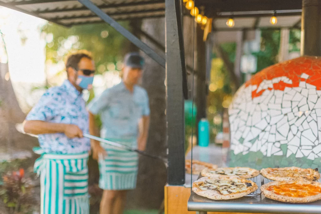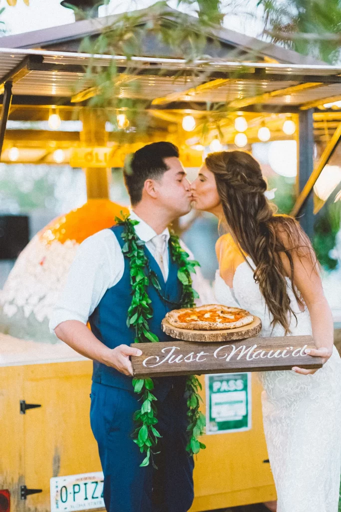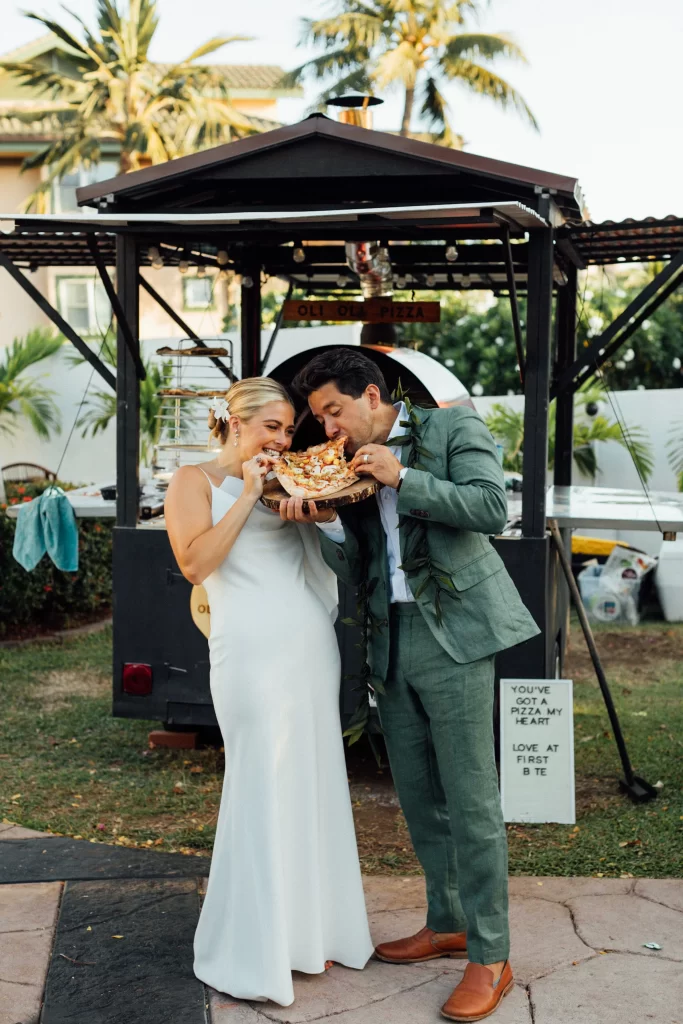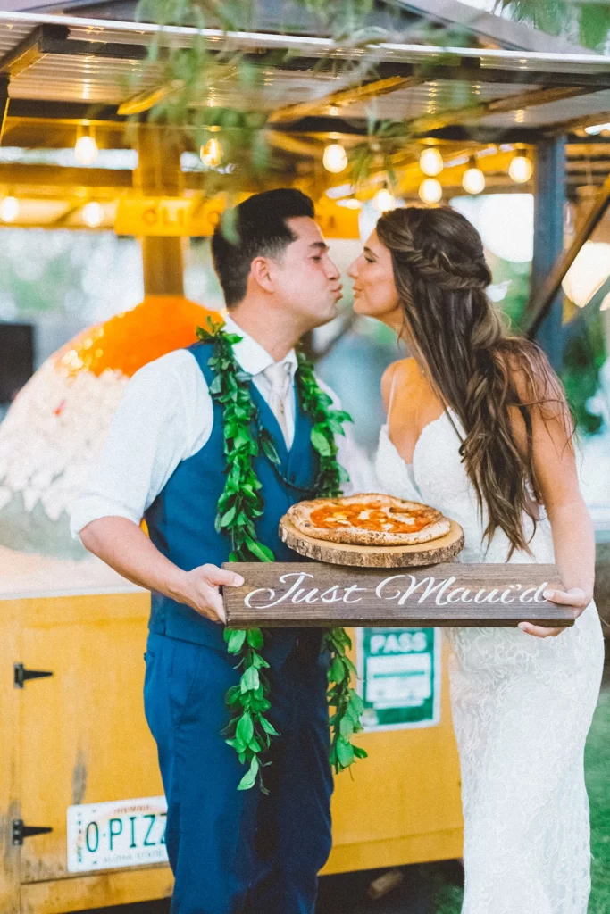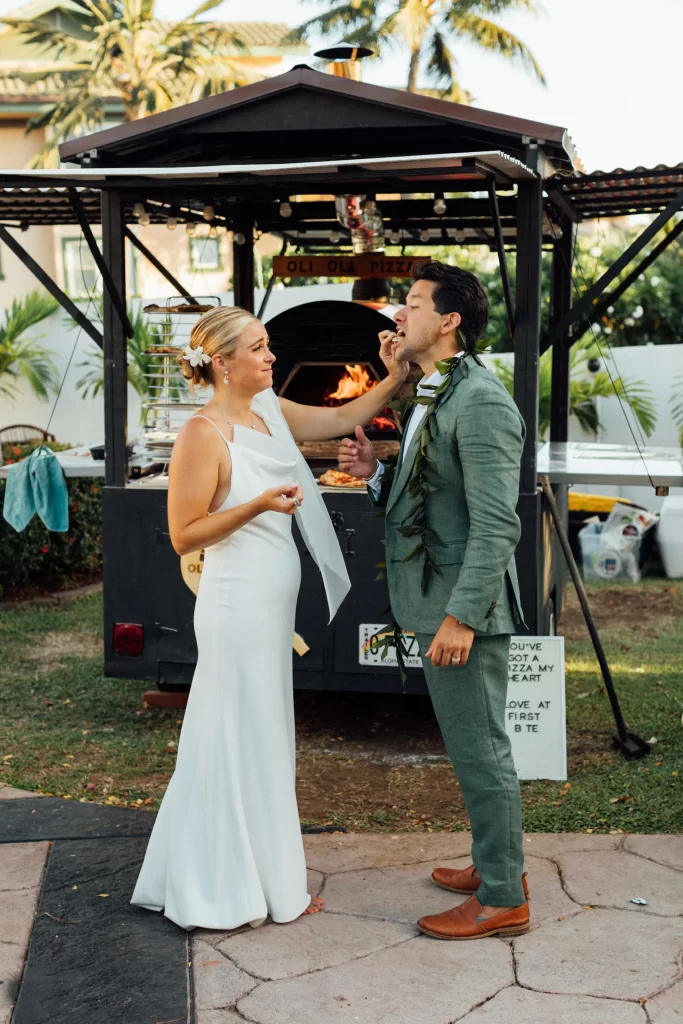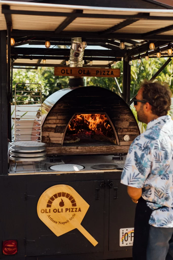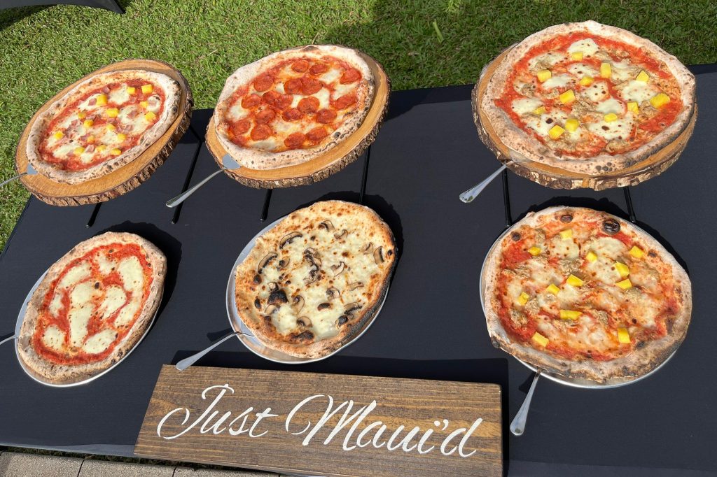 We adored this private location in Haiku, where they held both the rehearsal and actual wedding. Once we got set up, Chris & Kelly’s family and friends started to arrive and we started slinging pizzas!